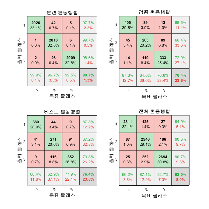 humid의 오답은 dry와 wet에 각각 비슷한 비율을 보이고, wet의 오답은 대부분 humid에 높은 비율로 보이고 있습니다.