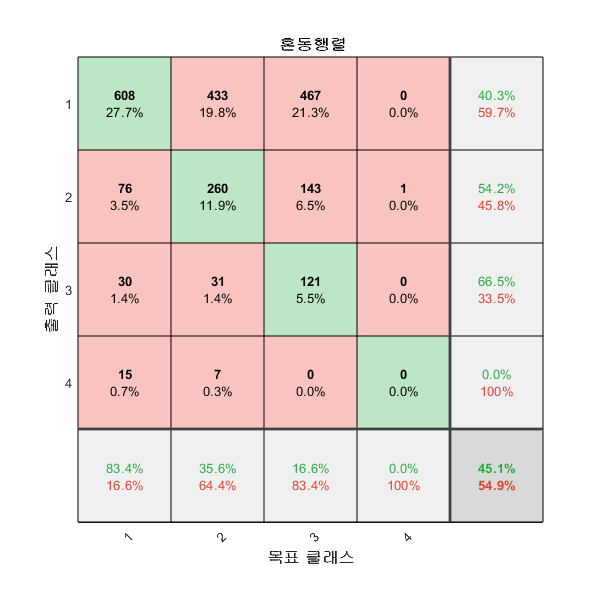 이전 학습 모델과 비교하여 전반적으로 정확도가 오른 형태를 보이는데(45.1% -> 76.2%)